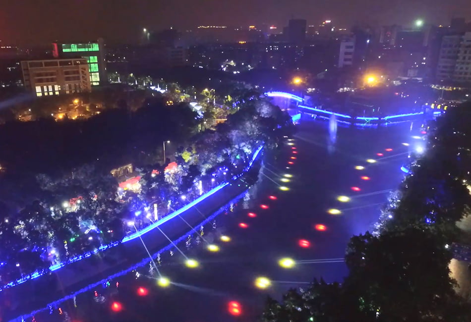 彩色汾江項目設(shè)計按照“一軸,兩帶,多點”的燈光創(chuàng)意理念,把規(guī)劃地段凝聚成一幅以剪紙、粵劇等佛山最具代表性的文化元素,結(jié)合現(xiàn)代、時尚、科技等元素,展現(xiàn)出一幅豐富立體的燈光巨卷。